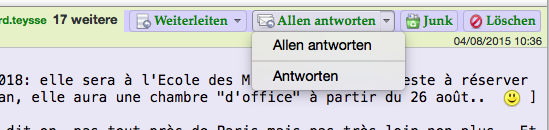 Der "Smart Antworten" wird dann jeweils als Button "Antworten" angezeigt, wenn die Mail nur an dich gerichtet ist, oder als Button "Allen antworten" (mit der Möglichkeit "Antworten" im drop-down-Menü), wenn die Mail an mehrere Empfänger gerichtet ist.Gruß
