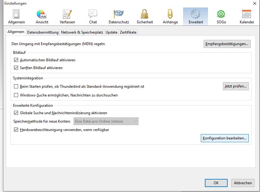 Es scheint, als ob Thunderbird beim Laden des Inhalts irgendwie hängt.