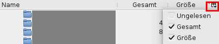 Neben dem Namen des Ordners werden die Zahl der ungelesenen und aller Nachrichten im Ordner sowie der Dateiumfang des Ordners in kB oder MB angezeigt, also drei sinnvolle und wichtige Spalten zusätzlich.