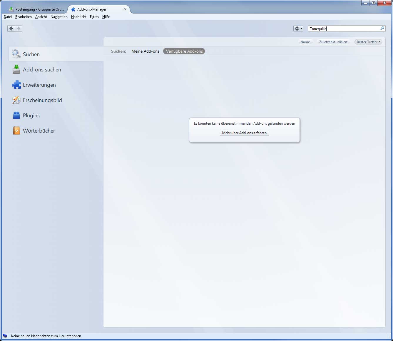ich versuche verzweifelt, diverse Add-ons zu installieren und bekomme bei fast allen eine Inkompatibilitätsmeldung, z. B. bei Tonequilla (https://addons.mozilla.org/en-US/thunderb…lla/?src=search), Color Folders (https://addons.mozilla.org/de/thunderbird…/color-folders/). Auch Workarounds wie Nightly Tester Tools (https://addons.mozilla.org/de/thunderbird…ols/?src=search) lassen sich nicht installieren. Scheint alles inkompatibel zu sein.