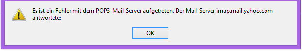 mir ist aufgefallen, dass sich ein selten genutztes Postfach nicht mehr abrufen lässt; Anfang /Mitte 2014 kamen die letzten E-Mail's rein, wann die Umstellung von POP zu IMAP war, weiß ich leider nicht mehr -bin mir jedoch sicher das IMAP einst funktionierte.