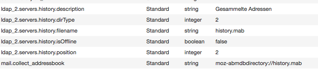 Jetzt hatte TB einmal die Lokale history + eine Kopie am Server als extension.addressbook geladen.