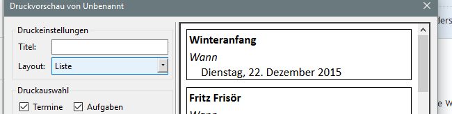 Dafür hätte ich gerne eine (gedruckte) Liste aller meiner Termine.
