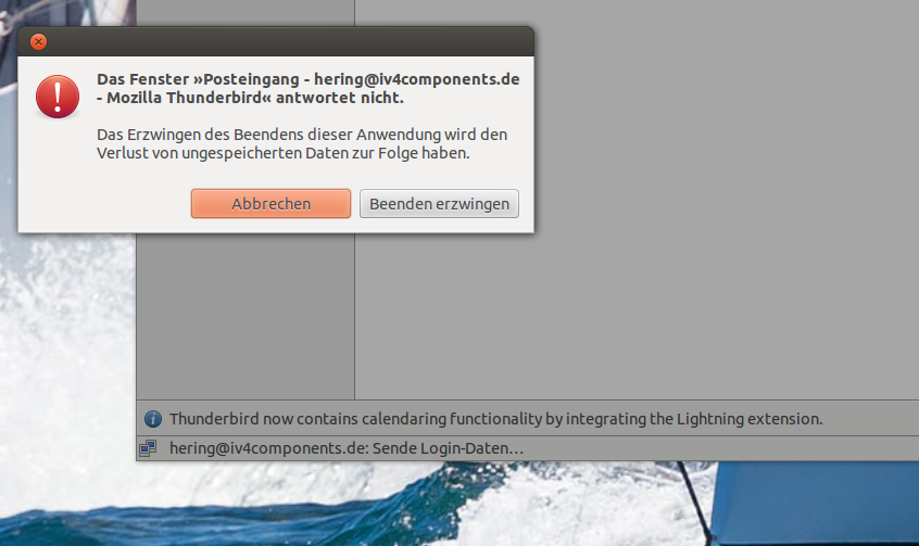 Ubuntu Thunderbird hängts sich auf bei Neustart