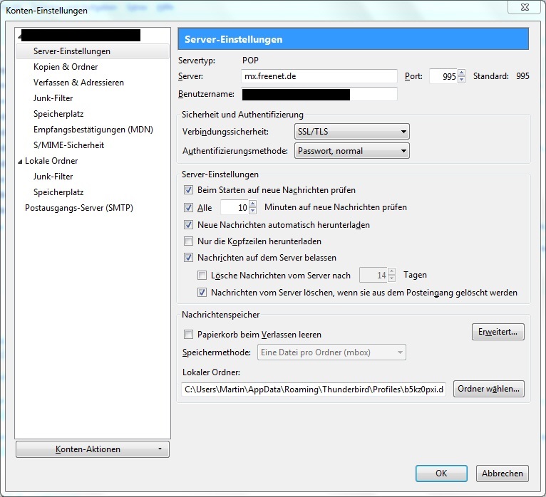 ich habe folgendes Problem. Ich nutze Thunderbird zur Email-Verwaltung am PC. (POP-Konto)