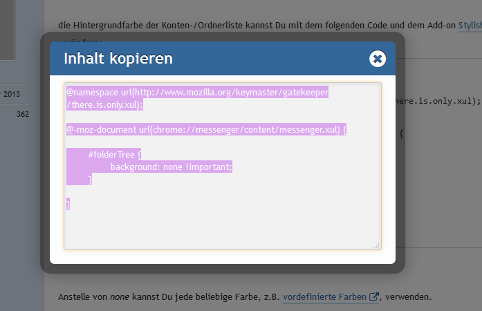 wie kann ich unter win 10 auf der linken seite des thunderbirds die mail-adressen-leiste farblich verändern? (s.bild)