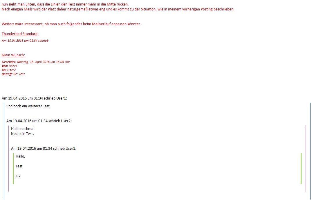 2) keine Linien bzw. Rahmen beim Mailverlauf