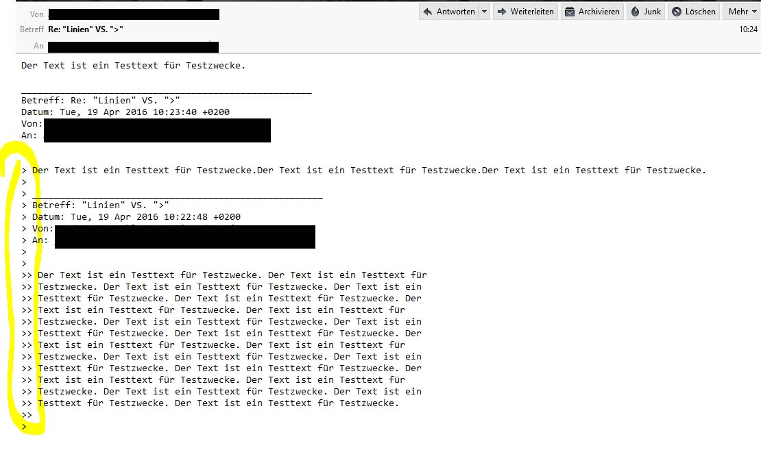 Thema: "Antwort-Mail - möchte dringend die Zitatlinien/-zeichen deaktivieren können"