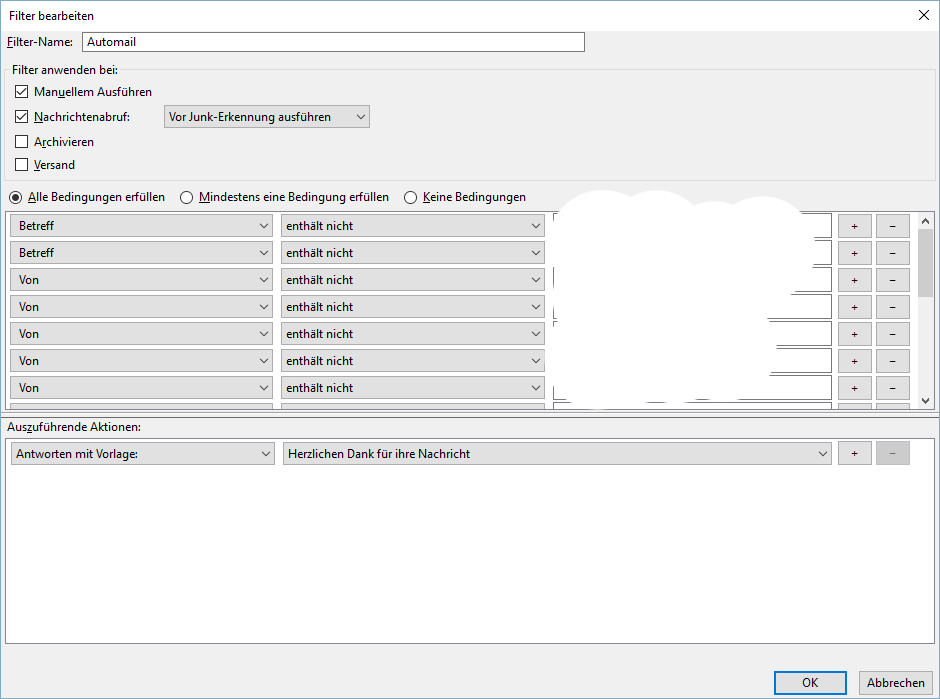 Habe in meinem Thunderbird einen Filter eingestellt, der bei eingehenden Mails beim Abrufen automatisch mit einer E-Mail aus