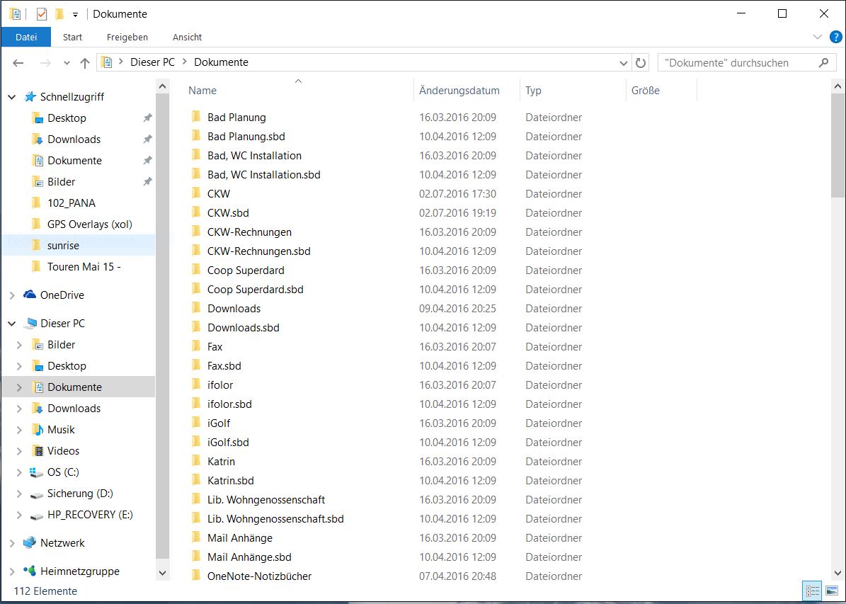 .SBD-Ordner werden neu im Verzeichnis Dokumente angelegt