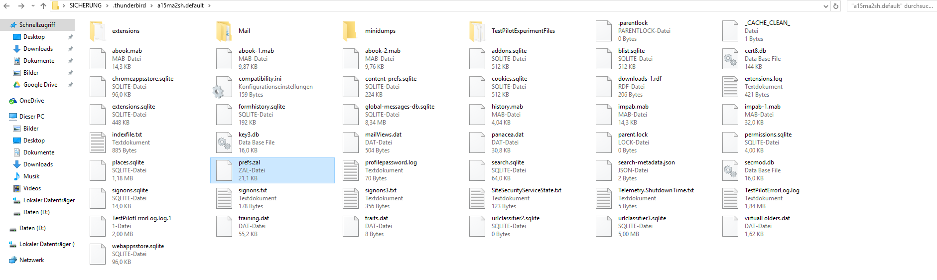 - Ich kopiere einfach den .thunderbird Ordner zurück. In diesem Sicherungsordner ist seltsamerweise offenbar keine profiles.ini vorhanden. Thunderbird erstellt eine profiles.ini und legt einen weiteren, neuen Profilordner an. Die profiles.ini verweist auf diesen Ordner.