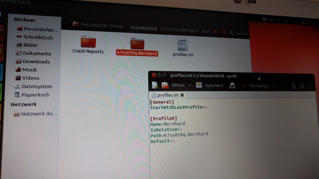 - Ebenfalls erkennt eine Windows Version von Thunderbird das Profil nicht.