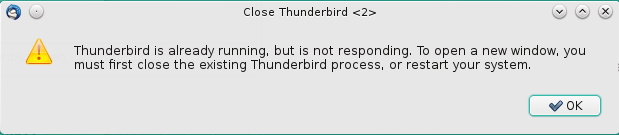 Die Fehlermeldung tritt auch dann auf, wenn thunderbird während des startens zweimal angewählt (und damit wohl gestört) wird.