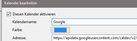 * Google-Kalender mit "Provider for Google-Calendar" (ja/nein): ja