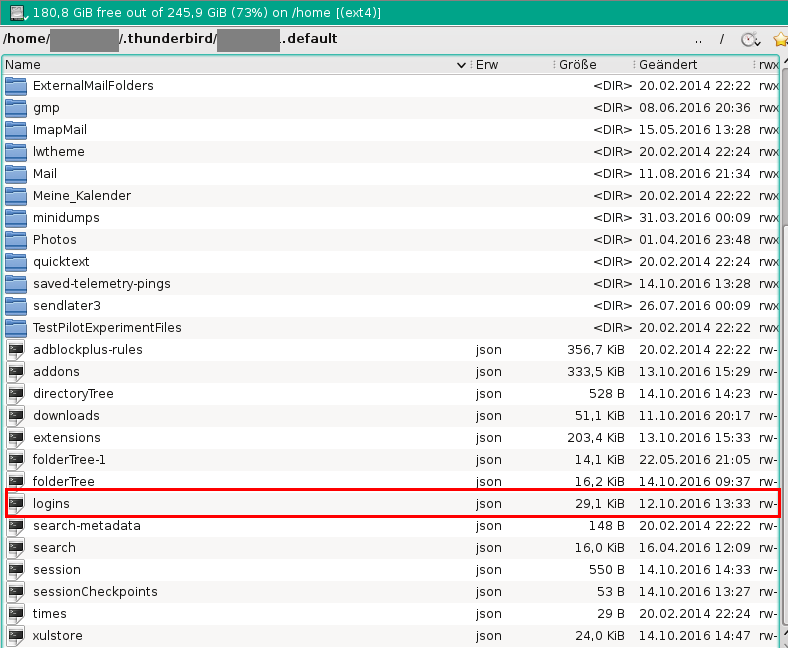 Starte dann den TB und richte wieder ein ganz neues Profil ein. Gibt die Passwörter neu ein und rufe die E-Mails ab. Beende den TB und kontrolliere, ob die Datei logins.json neu angelegt wurde und von der Größe her passen könnte. Falls ja, beende und starte den TB im Safe-Mode und schaue, ob es funktioniert.