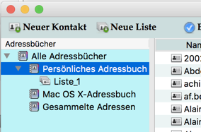 • öffne das Adressbuch, erstelle ein neues Adressbuch (> Datei > Neu > Adressbuch) und gib ihm einen beliebigen Namen (aber nicht "Persönliches Adressbuch"),