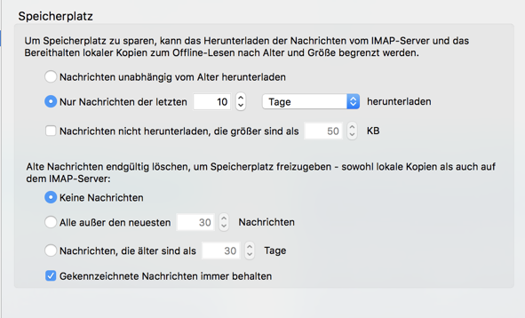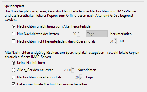 * Kontenart (POP / IMAP): IMAP