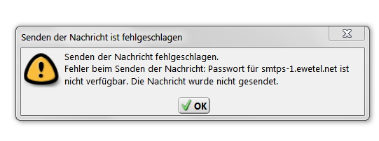 Beim Senden kommt die Fehlermeldung "Passwort für ... ist nicht verfügbar", siehe Screenshot.