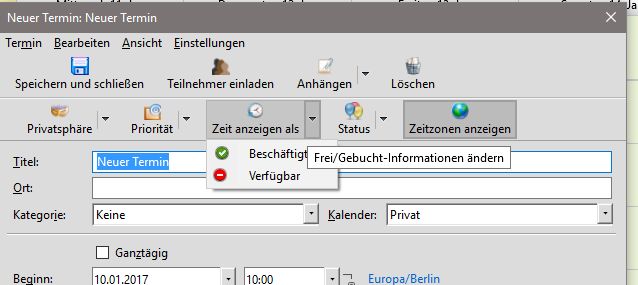 Ich benutze Thunderbird mit Lightning schon sehr lange, habe zusätzlich noch das Exchange EWS Provider Add-on installiert. 'Abwesend' kann ich aber in keinen meiner Kalender (caldav) via Lightning setzen. Darum konnte ich Lightning auch noch nie alleine nutzen, sondern muss dann immer mit dem Smartphone oder dem Web-Client den Eintrag auf 'abwesend' setzen...