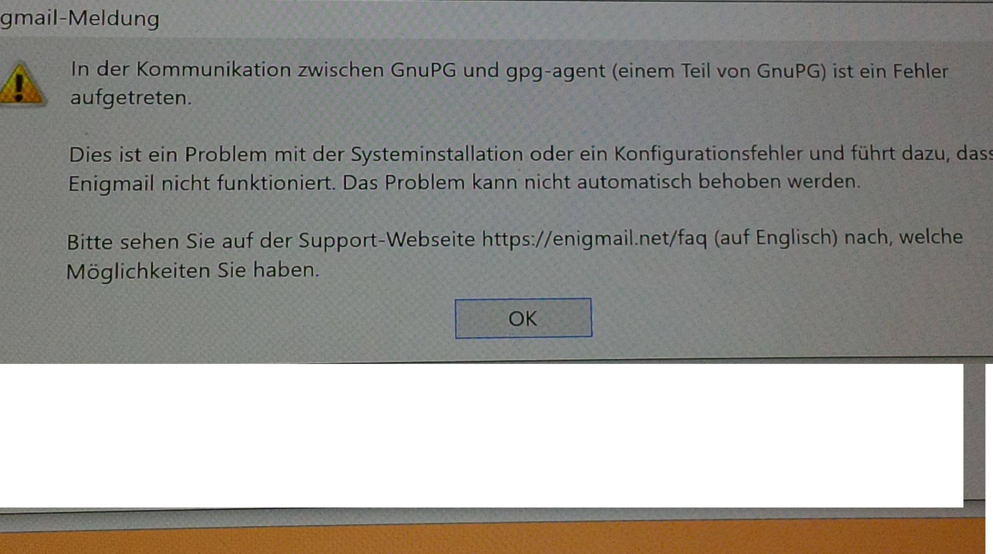 In der Kommunikation zwischen GnuPG und gpg-agent (einem Teil von GnuPG) ist ein Fehler aufgetreten.
