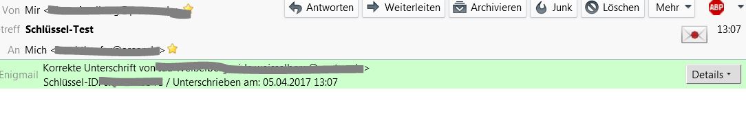 Mir ist das ehrlich gesagt viel zu undurchsichtig. Außerdem ist mir aufgefallen, dass das Konto bei Posteo ist. Somit können ja sogar mehrere Schlüsselpaare beteiligt sein, denn Posteo bietet die Verschlüsselung ja auch über den Browser an.