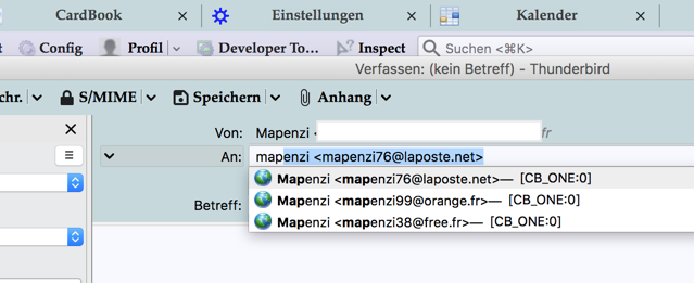 (obwohl der im Adressbuch eingetragen ist) und es kommen dann auch keine