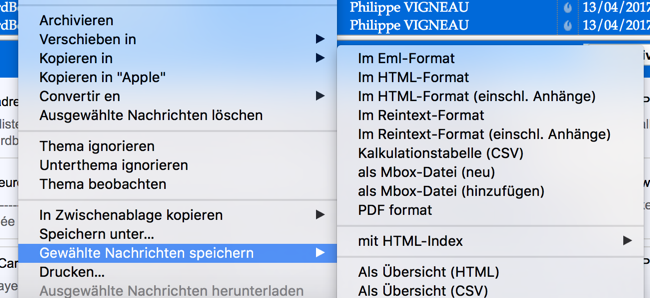 Ausgewählt habe ich aus meiner Erinnerung den Posteingang-Ordner (bzw. hauptordner sozusagen) und dann ging ich auf "Alle Nachrichten des Ordners exportieren" bzw. auf "HTML Format" und wählte das entsprechende Verzeichnis aus.