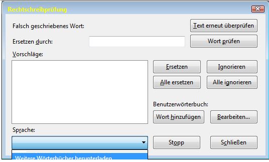 Wenn ich die durchführen will, ist da gar kein Wörterbuch installiert...: