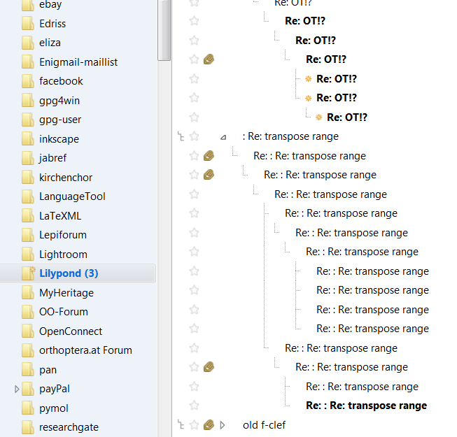 Mir fällt übrigens jetzt erst auf, dass in deinem ersten screen shot bei drei der ungelesenen Mails ein kleines goldenes Sternchen vor dem Betreff steht. Warum handelt es sich bei diesem Symbol?