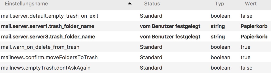 Hier können Sie Ihren Text schreiben: Ich habe den Papierkorb unter Eigenschaften/Speicherplatz den Punkt auf "keine Nachrichten" gesetzt. Trotzdem werden alles Mails älter als 1 Woche gelöscht.