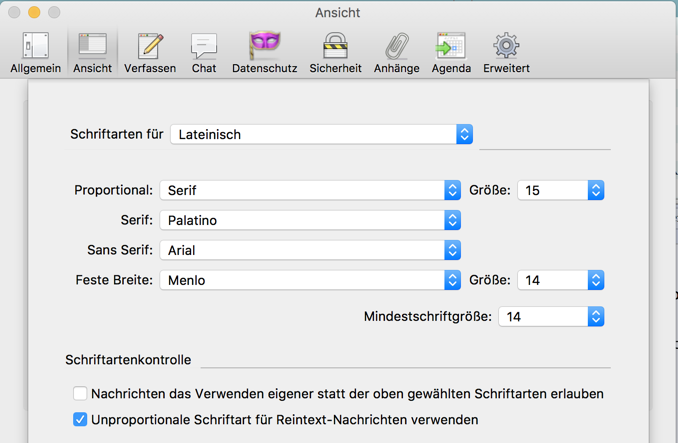 beim Lesen einer E-Mail kann man durch Scrollen mit dem Mausrad + Strg die Schriftgröße ändern. Allerdings ist nach dem nächsten Start die Änderung nicht mehr eingestellt.