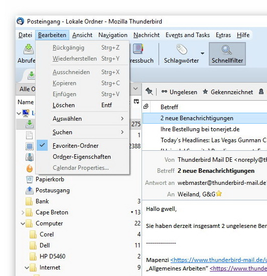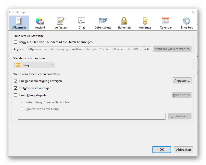 - Thunderbird-Version: 52.3.0 (64 bit)