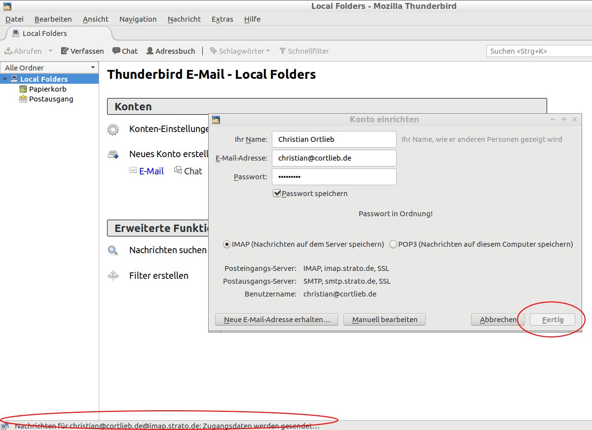 in der Statuszeile: "Nachrichten für chr...@cort....de@imap.strato.de: Zugangsdaten werden gesendet ..." steht.