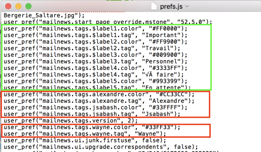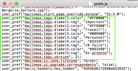 Du kannst die Datei prefs.js des alten Profils öffnen und die den von dir gesetzten Schlagwörtern entsprechenden Zeilen user_pref("mailnews.tags.... kopieren und in die prefs.js Datei des neuen Profils unterhalb der Zeile user_pref("mailnews.tags.$label5.tag" einsetzen. Ich würde aber vorher eine Sicherungskopie der prefs.js des neuen Profils machen.