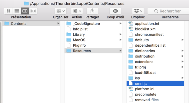den Paketinhalt des Programms "Thunderbird" anzeigen lassen: