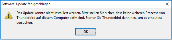Beim Neustart von TB erscheint die Meldung