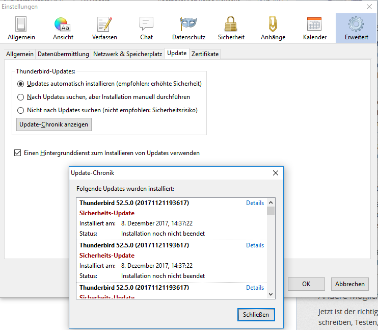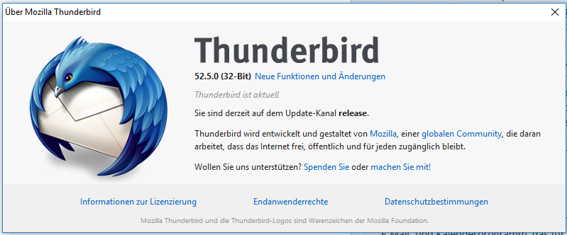 - Thunderbird-Version: 52.5.0 (32Bit)