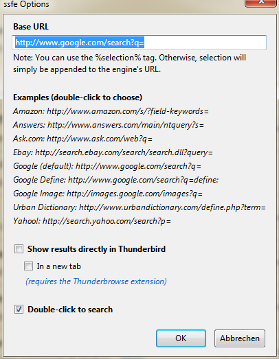 Hallo, ich habe das Fänomen, dass wenn ich in TB in einer e-mail ein Wort per doppelklick markiere wird sofort im Firefox eine Google Suche gestartet. Standart Suchmaschine ist nicht Google.