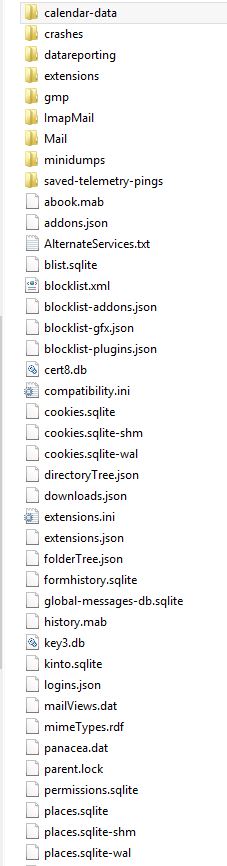 Tatsächlich finde ich, im Gegensatz zu Martina, unter "Informationen zur Fehlerbehebung > Profilordner" die unten beschriebenen Dateien ohne Endung. Nun müsste mir noch jemand sagen, wie ich damit zu verfahren hätte, um die verlorenen Ordner sowie die Einstellungen (Filter) wieder herzustellen. Weiß jemand Rat?