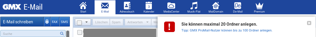 - Postfach-Anbieter (z.B. GMX): GMX