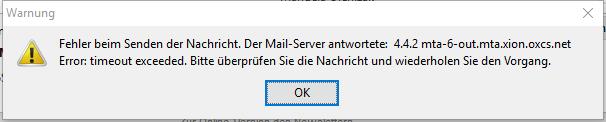 Ich kann keine E-Mails mit Anhang mehr versenden. Da bekomme ich folgende Fehlermeldung: