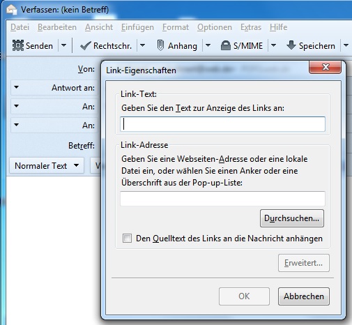 das Einfügen eines Hyperlink in die E_Mail funktioniert nicht mehr.