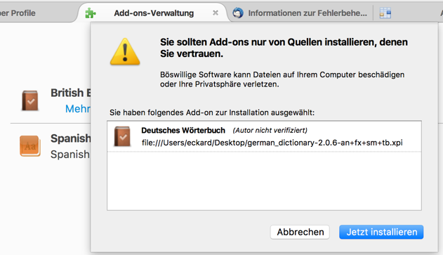 Mindestens 5mal habe ich jetzt ein Wörterbuch installiert - aber nach dem Neustart von Thunderbird ist es wieder weg und die Rechtschreibung funktioniert nicht.