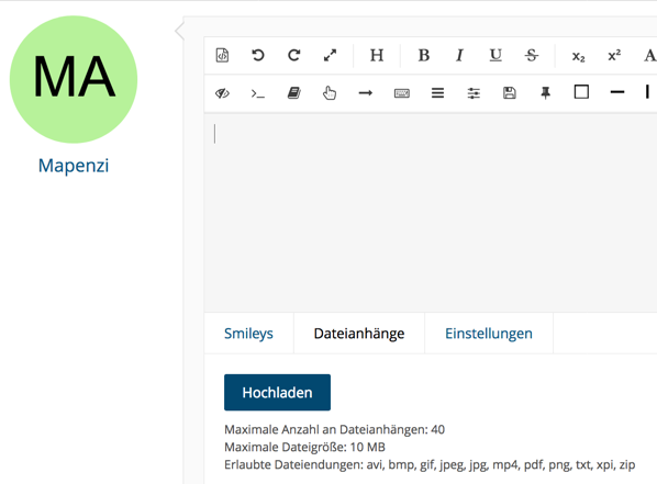 Doch, da geht's zunächst los. Klick auf "Dateianhänge", dann auf "Hochladen" und zu der einzustellenden Grafik-Datei navigieren: