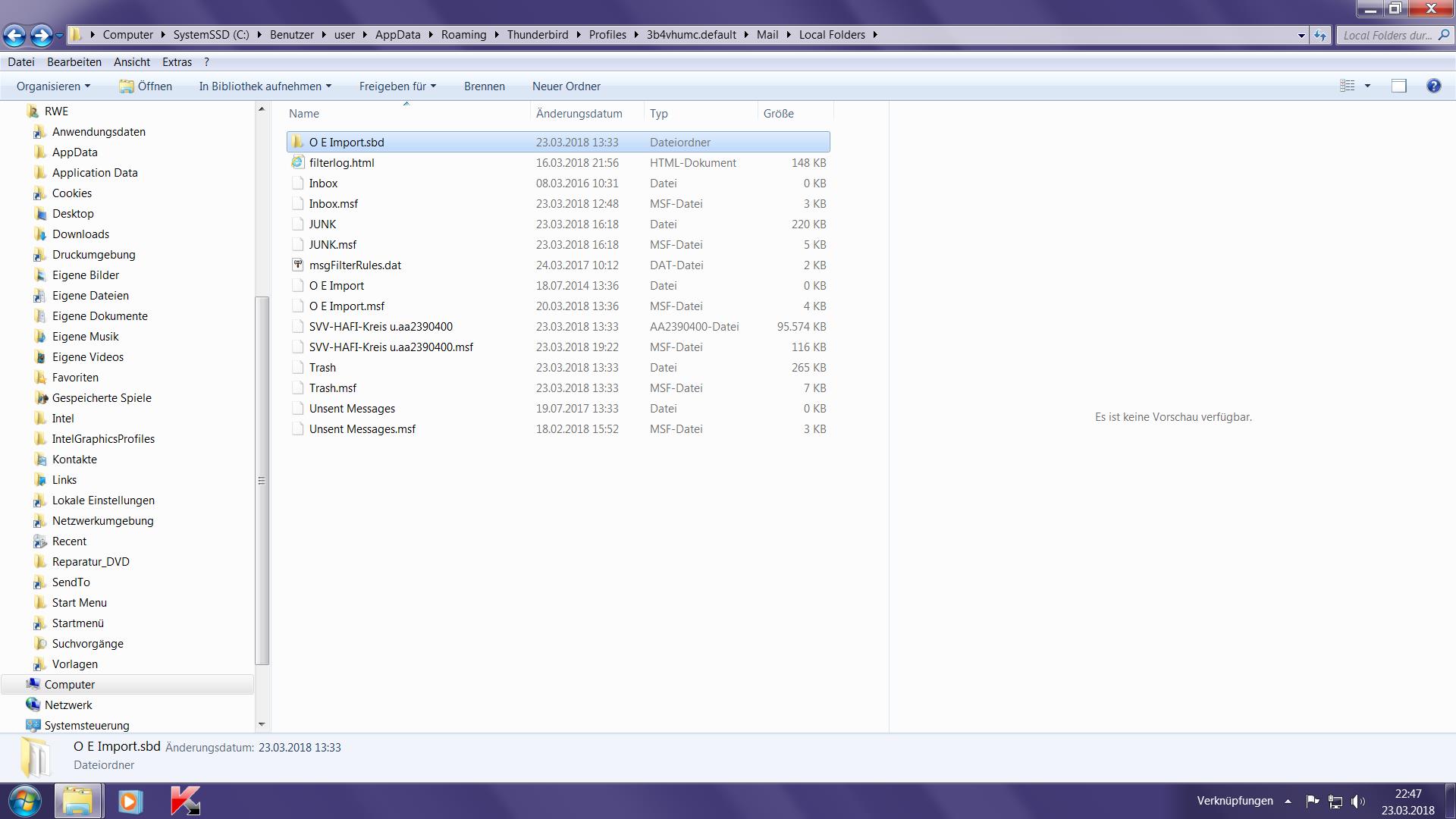 Ich würde auch gerne den kompletten Inhalt des Ordners "Local Folders" sehen, also alles was sich darin noch neben dem Ordner "OE Import.sbd" befindet.
