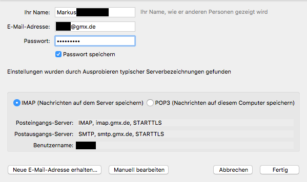 - Postfach-Anbieter (z.B. GMX): GMX