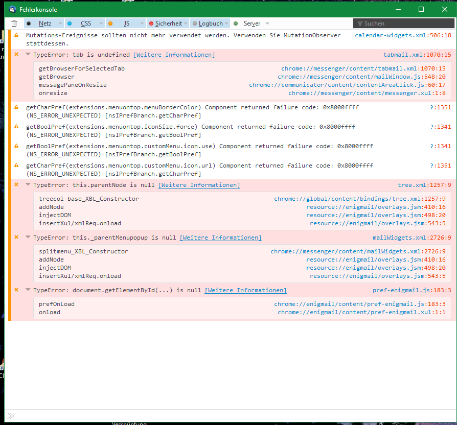 - Thunderbird-Version: 52.7.0 (32-Bit)