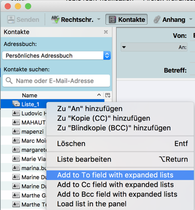 Wenn ich beim Verfassen einer mail in der Adressliste eine Liste mit rechter Maus anklickte, so konnte man auswählen zwischen "An" und sinngemäß "An mit Auflösung der Adressen". Analoges für CC und BCC. Die Möglichkeit der Adressauflösung habe ich nicht mehr.