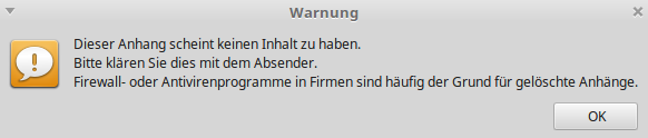 Als Warnung erscheint: Dieser Anhang scheint keinen Inhalt zu haben ......