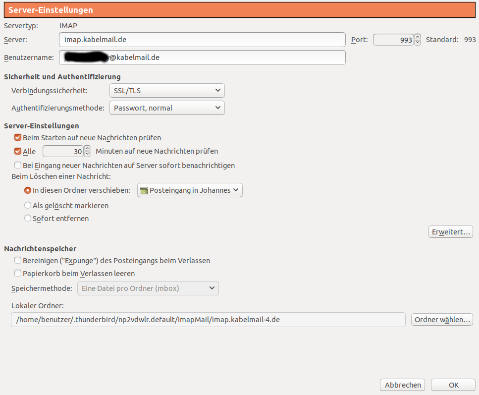 Ich bin auf Thunderbird und auf diese Konten angewiesen, weil mein ganzen wichtigen Mails in lokalen Ordnern systematisch gespeichert sind.